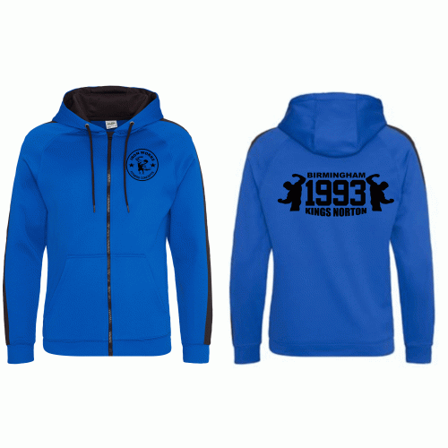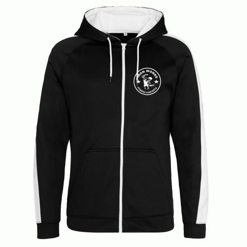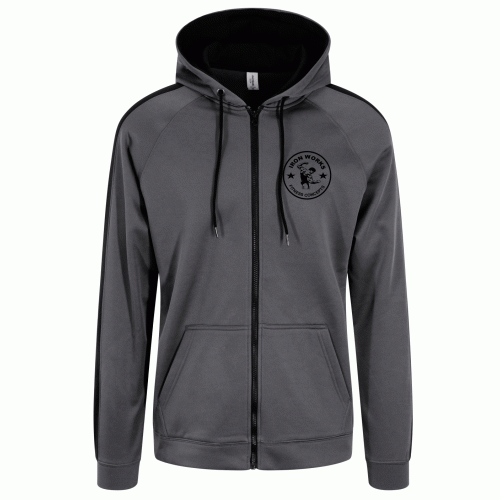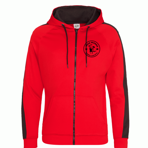 Give your activewear wardrobe an update with this sporty zoodie. Features include contrast panels on sleeves, a full-zip front and kangaroo pocket. This style is great layer for training and for wearers with an active lifestyle.